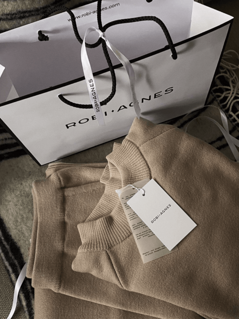 We only use upcycled LEATHER (hides) from food industry waste for our signature ROBI AGNES labels sewn onto our knitwear. Accordingly, we can honestly say that no animals are bred specifically for their hides, as we are turning an already existing leftover into durable labels. All because if we didn’t up-cycle the hides, they would end up creating a very big pile of waste.